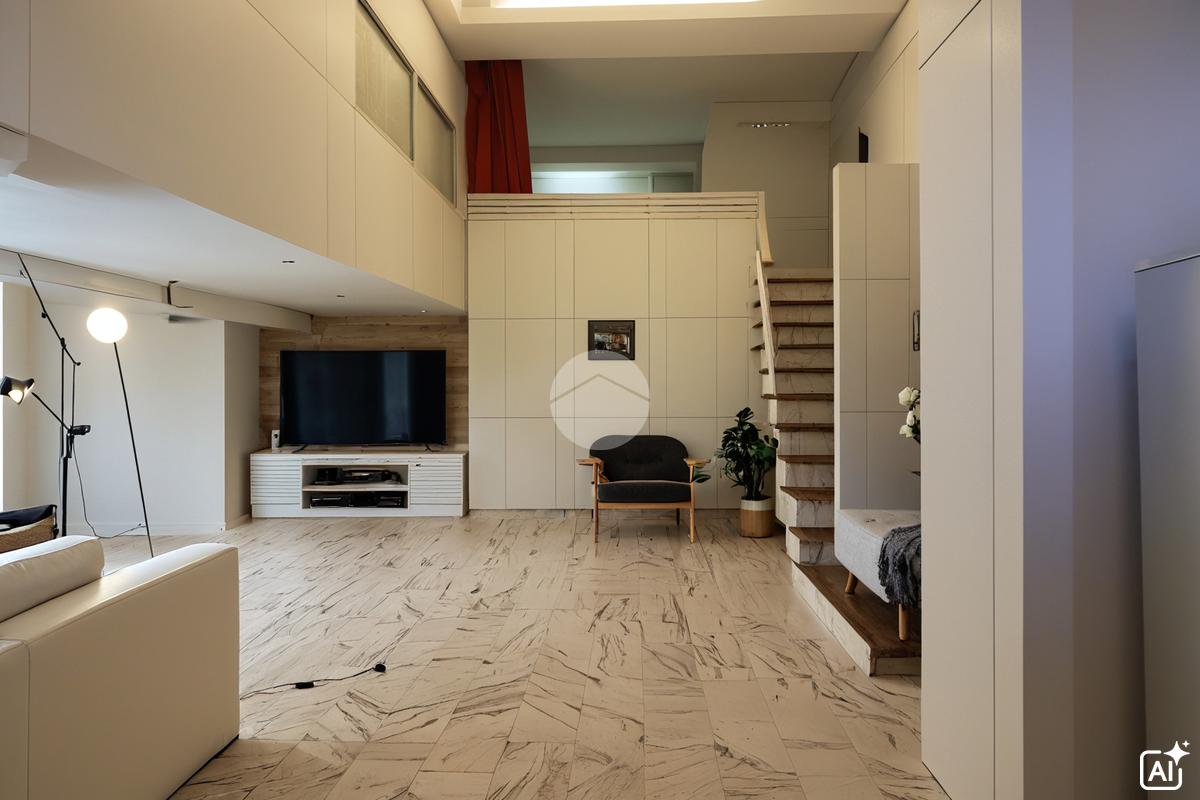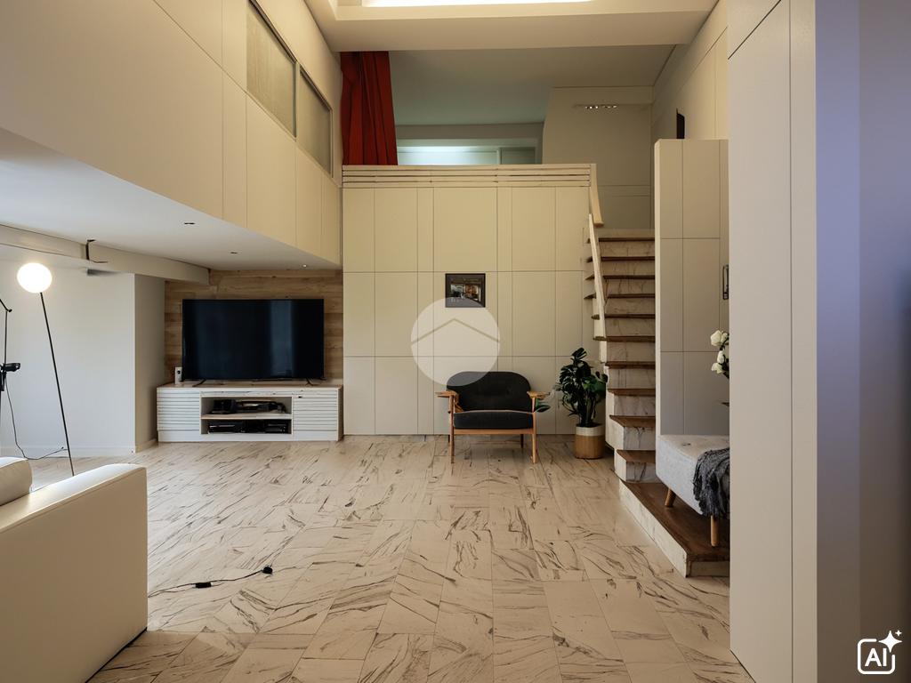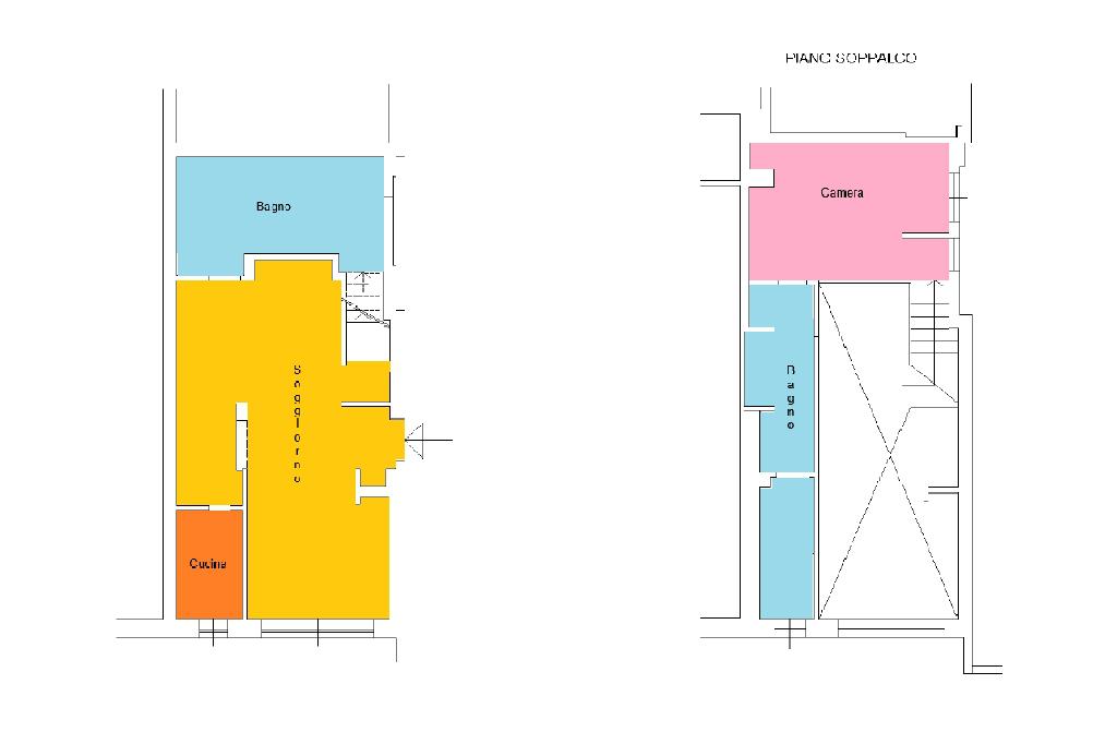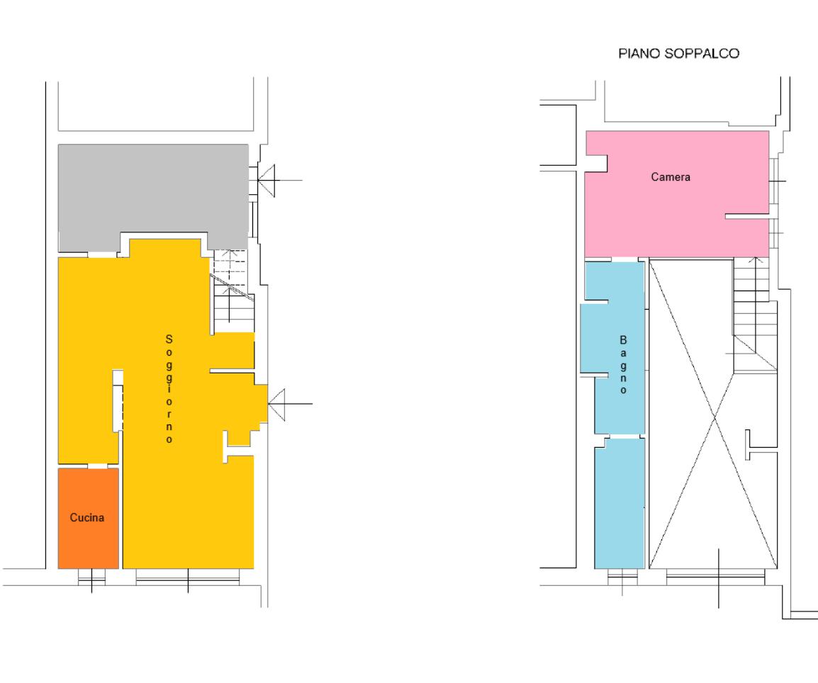 L'immobile si presenta su due livelli, entrando troviamo un soggiorno con cucina ed un bagno, salendo delle comode scale troviamo la camera da letto ed un secondo bagno.