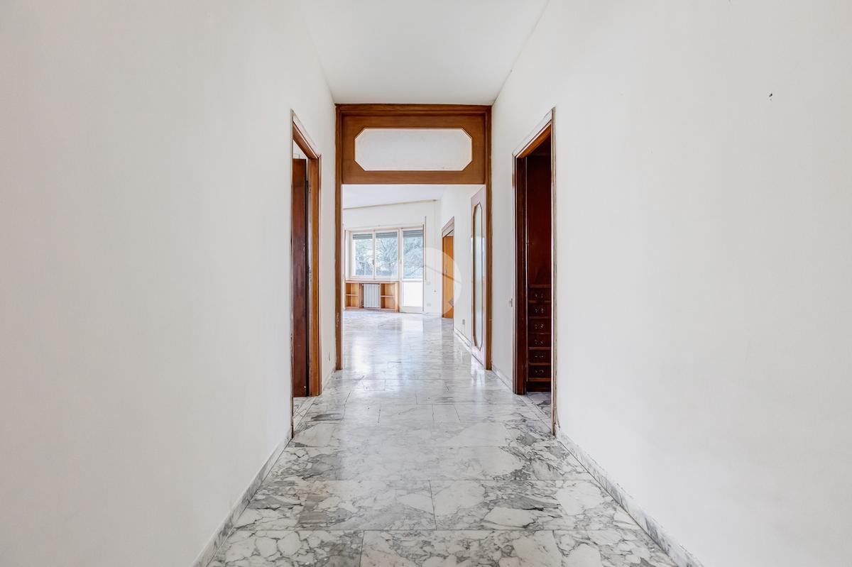 L'immobile, dagli spazi molto ampi, si presenta da ristrutturare, attualmente ha pavimentazione in marmo nella zona giorno e parquet nella zona notte, gli affacci sono tranquilli e silenziosi all'interno dei giardini condominiali e gode di un'esposizione da tutti e quattro i lati.