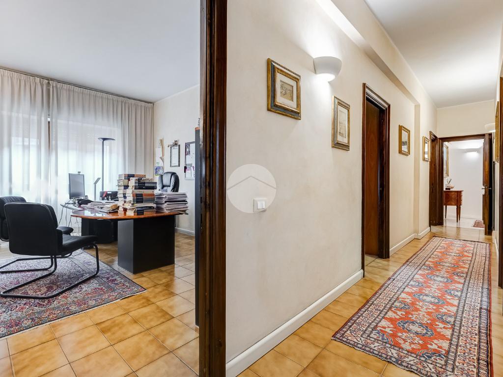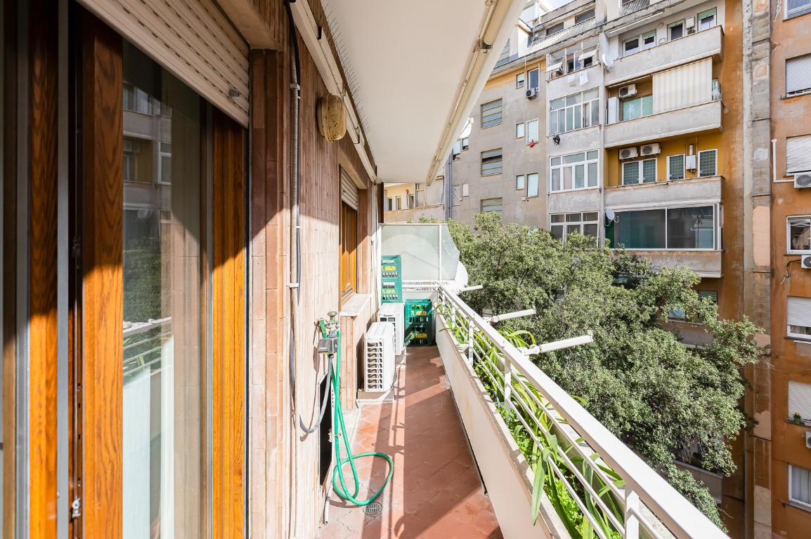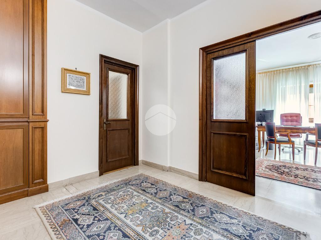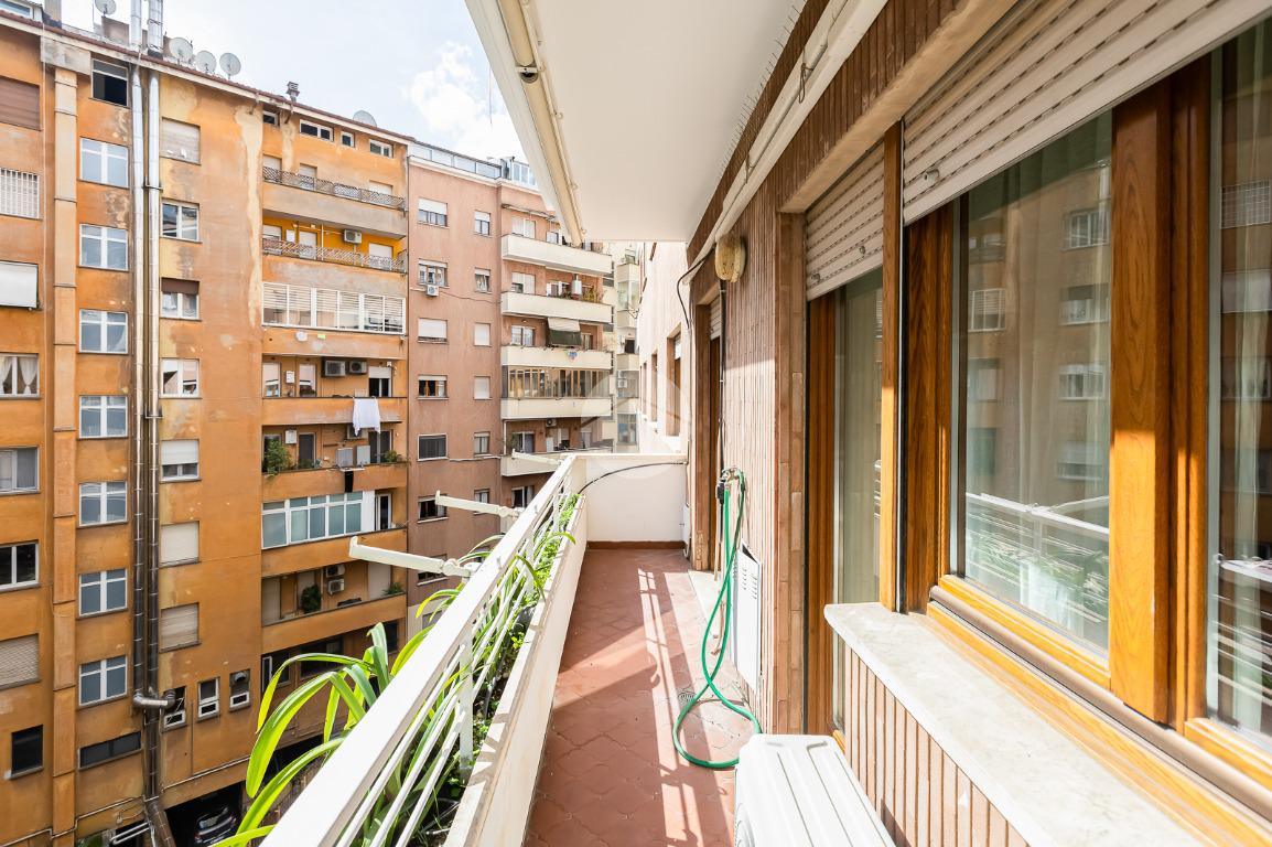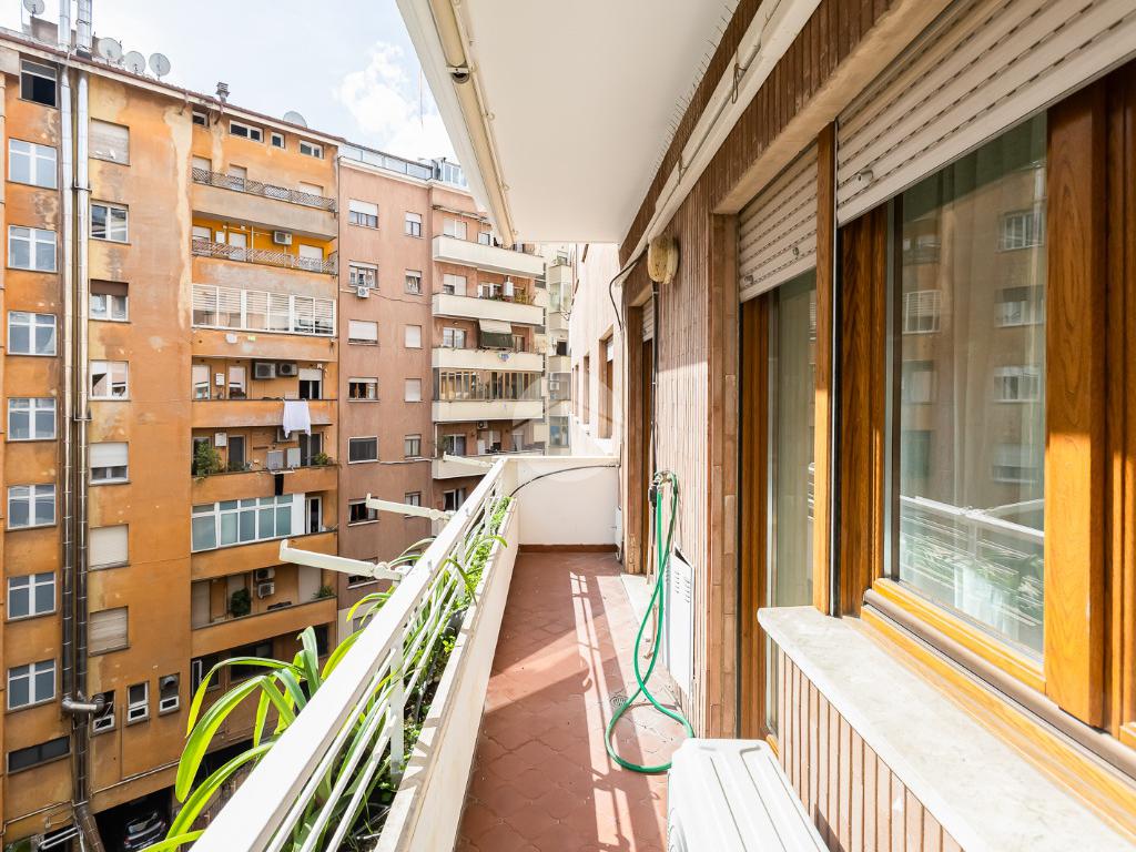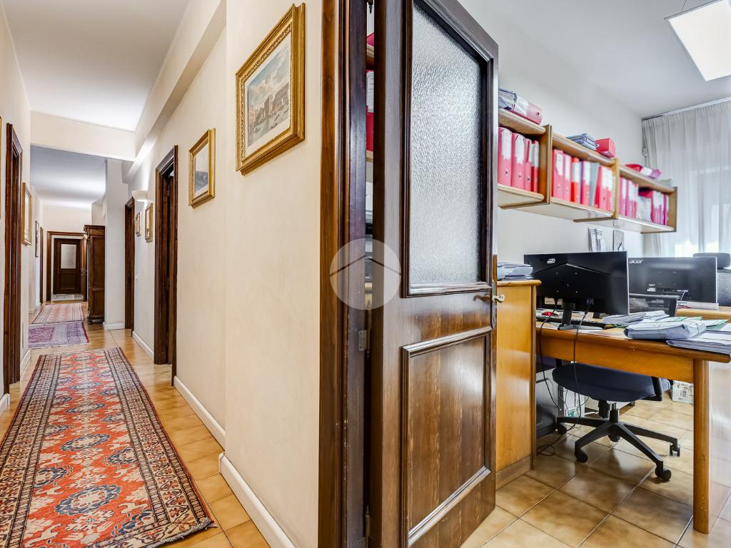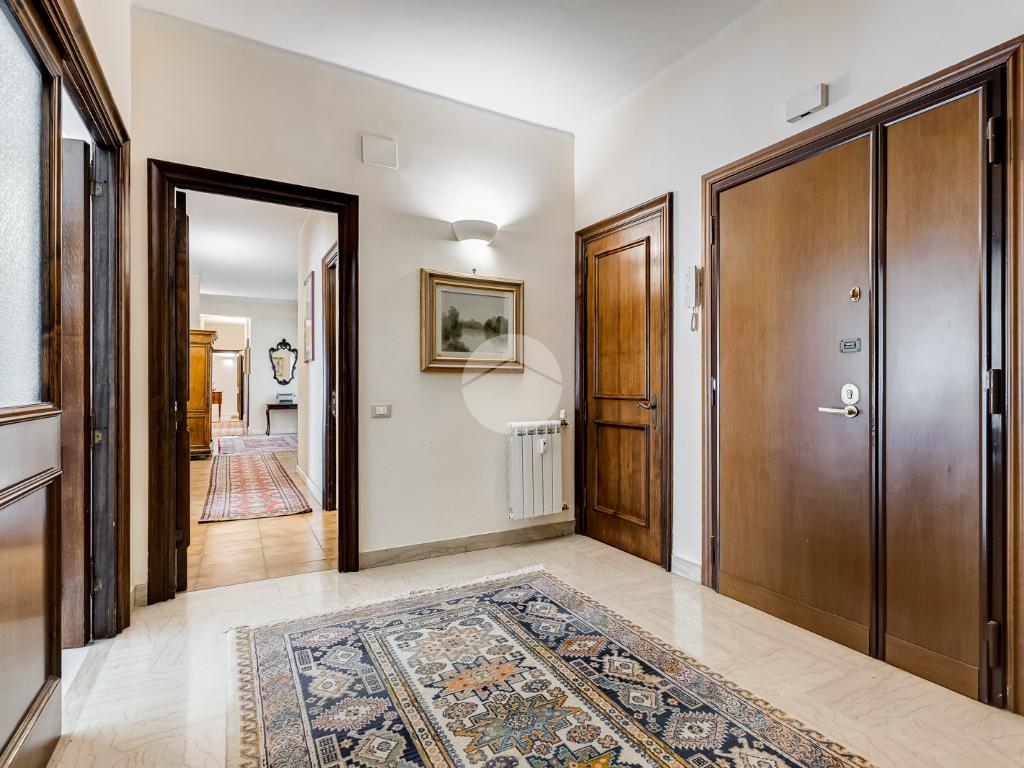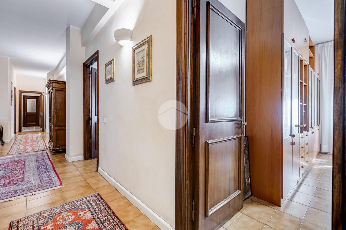 Attualmente si compone di doppio ingresso, sette camere, doppi servizi e due balconi. Si presenta completamente ristrutturato con riscaldamento centralizzato con valvole a consumo e impianto di climatizzazione presente in ogni ambiente.