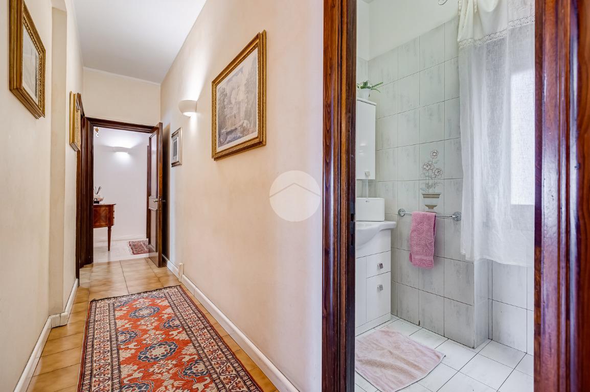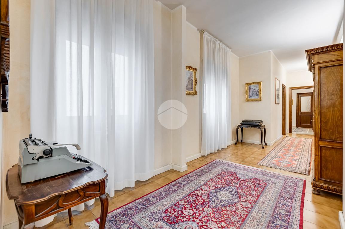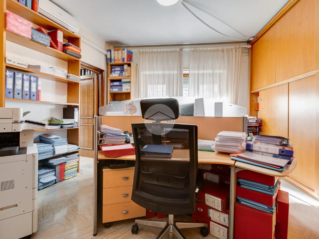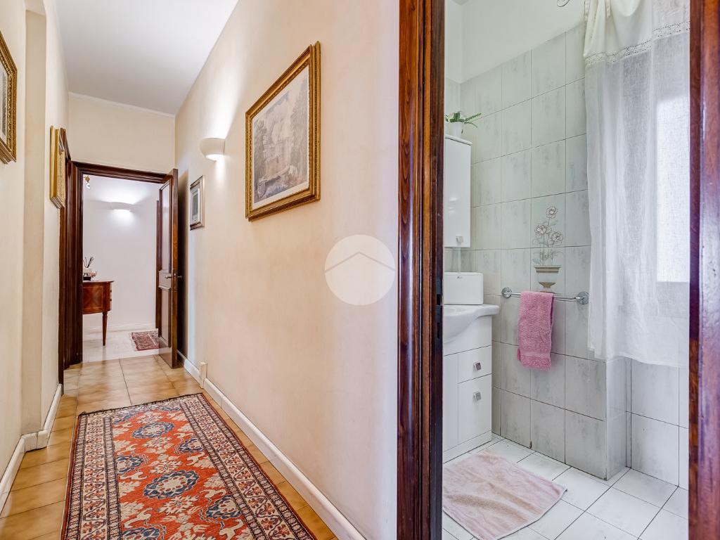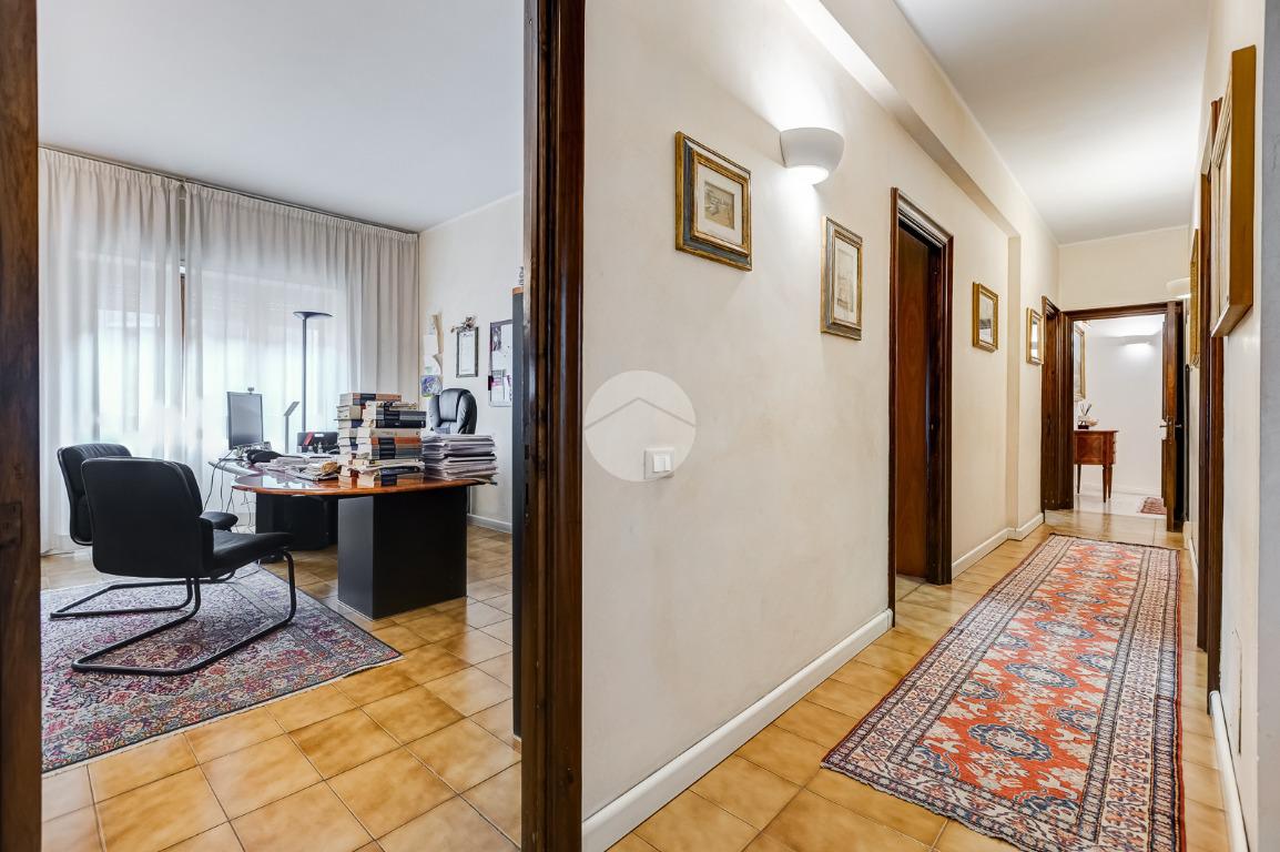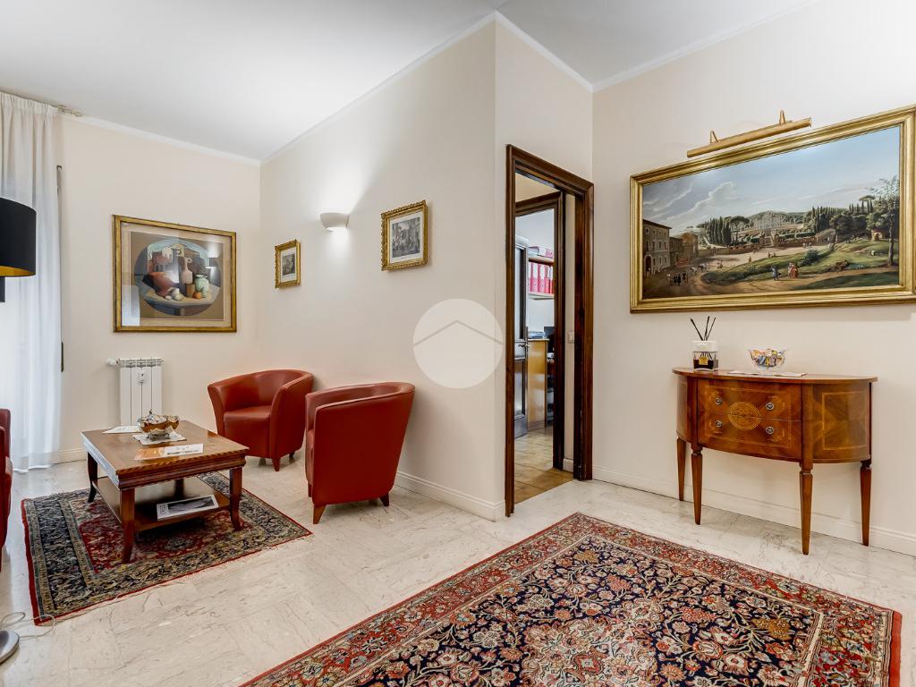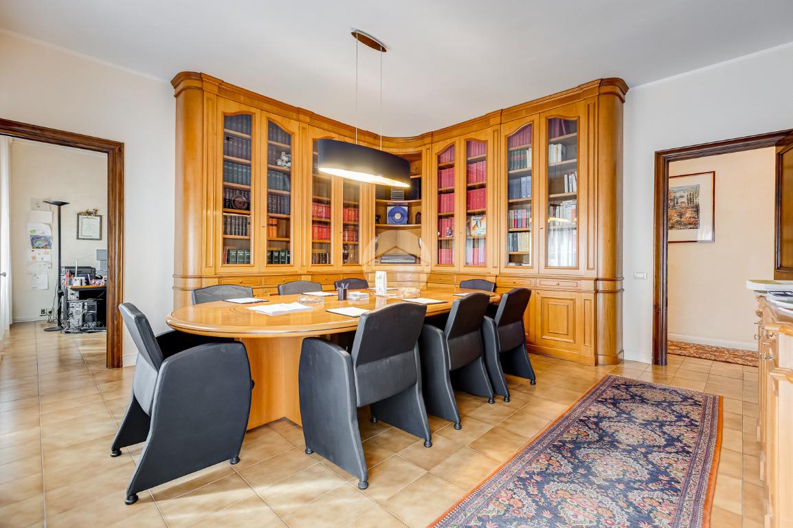 Attualmente si compone di doppio ingresso, sette camere, doppi servizi e due balconi. Si presenta completamente ristrutturato con riscaldamento centralizzato con valvole a consumo e impianto di climatizzazione presente in ogni ambiente.