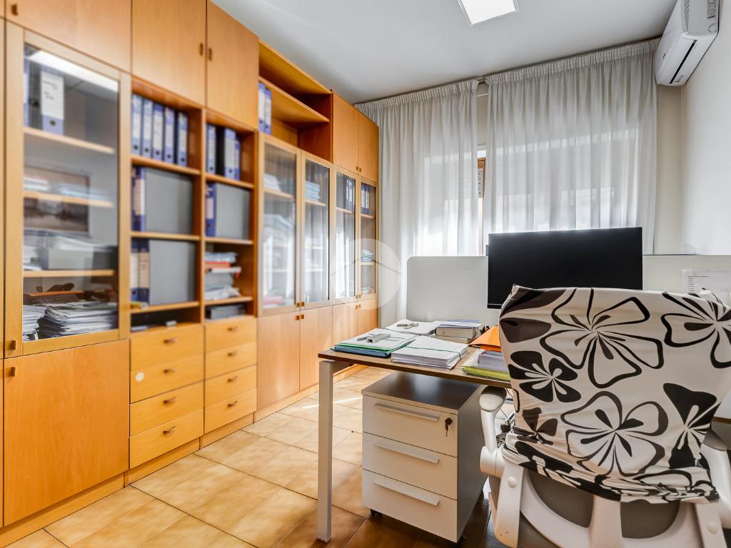 L'immobile caratterizzato dalla presenza di un doppio ingresso è accatastato come ufficio e locato ad uno studio professionale.